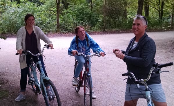 On Friday we rented bikes from Mike's Bikes and rode through Englischer Garten. Didn’t see any nude sunbathers, probably due to the cooling weather. We stopped to watch the surfers. When I pointed out a nearby rope swing over the river our eldest proclaimed we should go back for our swimsuits. After a pause she added "or we could just strip naked and go now, because that's a thing here, right?"