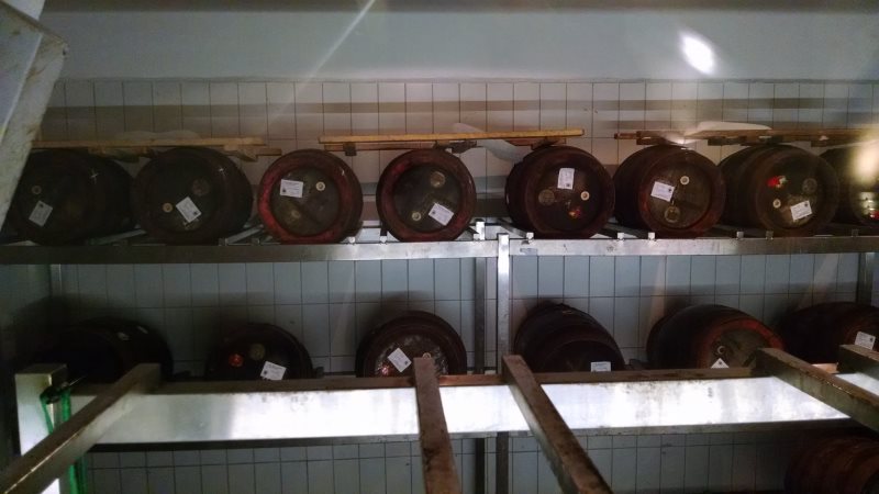 Wood casks chilling in Der Pschorr's Holzfasskeller (literally, "wood keg celler") Note the use of ice blocks