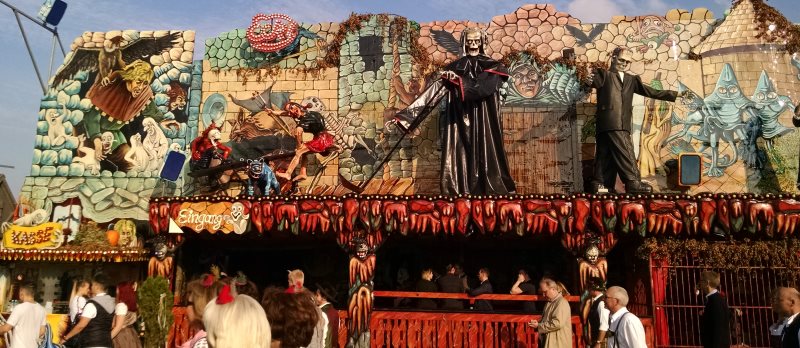 I took my leave of the group maybe around 9:30 or so, the last non-family-member to depart. The lights of the rides at night were a great show, and I saw several casualties being handled around the exits from the fest, but no problems or sense of safety concerns at any time. I did experience quite a bit of difficulty finding my way back to the hotel, partly because we had just moved there that day and I had only walked the route once coming in that day, but mostly due to my dead flat cell phone battery and reliance on its powers of navigation. Oh, and my judgment may have been slightly impaired as well. I spent about 45 minutes on what should have been a 15-minute journey, during which I had the opportunity to use my high school German skills a half dozen times to ask directions. I finally swallowed my pride, admitted defeat, and took a 5 euro taxi to the hotel.