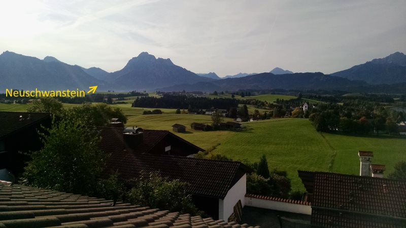 Tuesday was to be a travel and recovery day. We hopped in a nine-passenger rented van with our friends and took off south to our next hotel, Hartung’s Hotel Dorf at Hopfen am See, near Füssen and the famous castles of Neuschwanstein and Hohenschwangau.