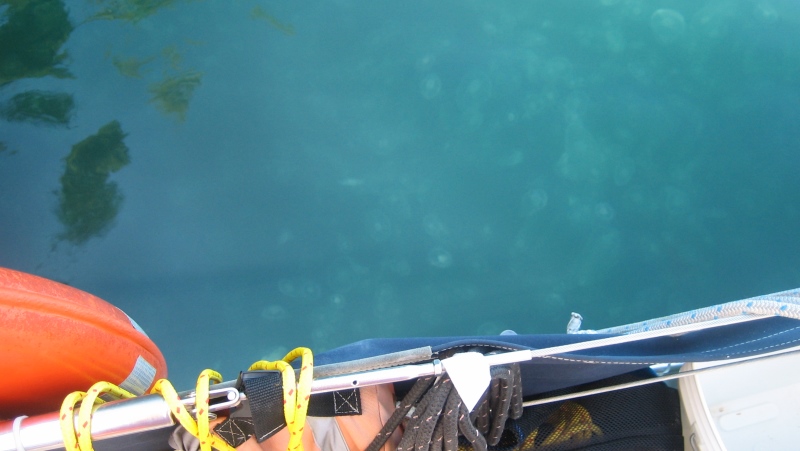 The girls nicknamed Tenedos Bay “Jellyfish City” due to the thousands of white jellies floating all around us during the day. Strangely, in the morning they were all gone. Maybe it is a tidal thing. They were benign and politely remained at about 12 feet and deeper, below our normal swimming range.
