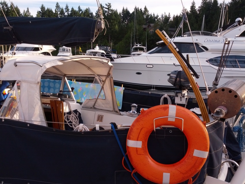 The shower is OK but it is one of those situations where there are just two washrooms, with shower, for the whole moorage. So if someone is taking a shower they are also monopolizing a toilet. Not a big deal on our visit as there were only maybe 4 other boats at the dock. There is a curious sign in the washroom stating "In consideration of your fellow boaters, please use your towel to dry the sink and floor after using the shower." Excuse me? Maybe you have mistaken us for the RVYC crew next door who I am sure have laundry servants and racks of dozens of towels. On my boat, I have a towel for showering and a towel for swimming, and I ain't gonna use either of them to wipe down the floor of the marina washroom! I’m also unimpressed by the lack of door code synchronization. What possible good reason is there to have each of your two washrooms on a different door code? Contrast this to Fisherman’s Resort where not only are the codes in synch, but they also are in the form of a clever mnemonic.