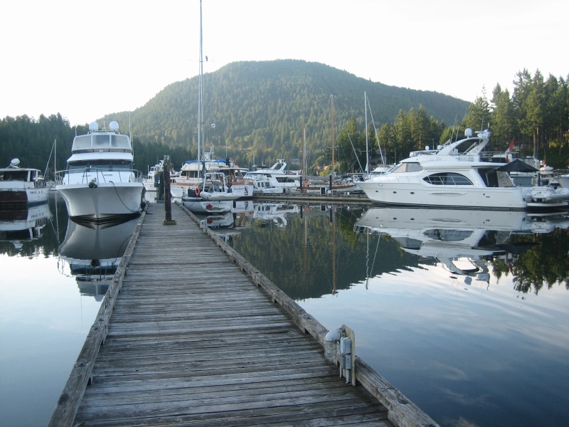 Dinner at the Garden Bay Pub and Restaurant was decent. They suffer from being understaffed. They had a help wanted sign out, something Kim remarked on: “when was the last time you saw one of those?” It would have been nice to sit on the deck, but that was all reserved on the restaurant side. The pub side had open tables, but was off limits to the girls. There is a really nifty private dock right next to the restaurant that is slowly crumbling away. It has maybe every third board missing. It looks ready made for filming a dramatic chase scene. Someone has a little yippy dog that is missing an eye and barks at me on the way up from the dock. The owner says “oh sorry! She has a problem with people wearing hats and sunglasses!” Huh? Maybe summers are not the best month to take you dog on vacation then. Later Kim witnesses a local ripping the owner a new one for bringing her problem dog out in public.