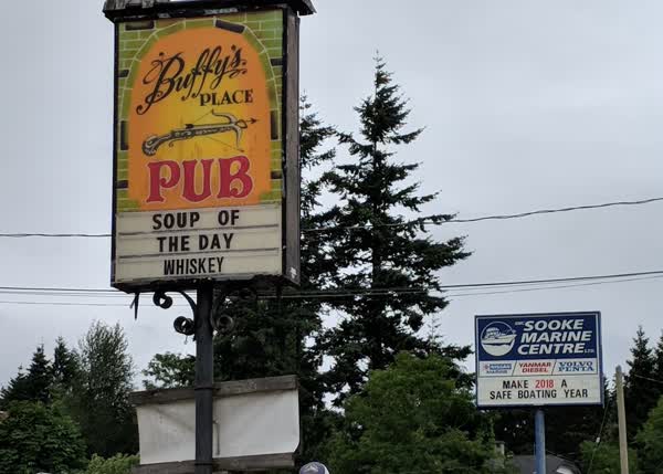 The Sooke Harbour Resort and Marina claimed to be full, although on departing the next morning this appeared to be untrue. Sunny Shores in Sooke Basin could take us, and while the thought of enjoying their showers and mini-golf course were enticing, it was not quite enough to get me to brave the charted 6 foot depths in the passage to the inner Sooke Basin where they are situated. So we took a spot on the government wharf with the fishing boats. It lacked any facilities other than the dock itself, but the location could not be beat with a short walk to the grocery store and Buddy's Pub just up the hill. And at just $26 for a night's moorage you got what you paid for.